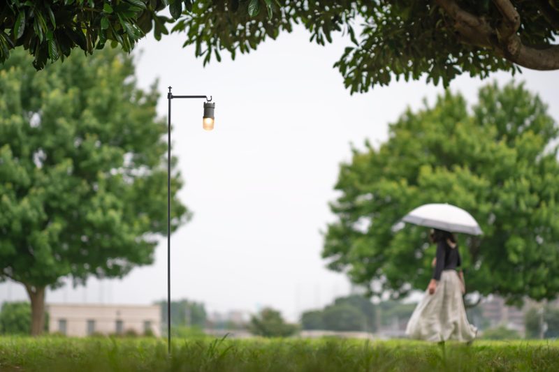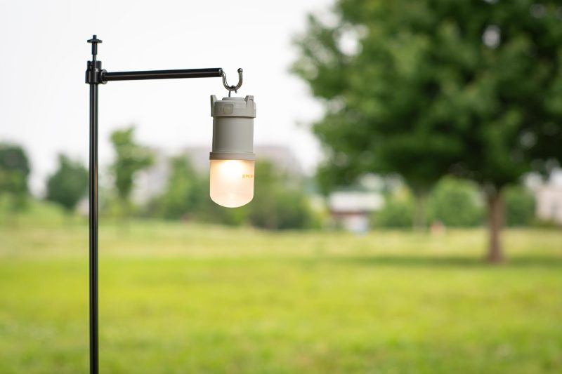 屋外キャンプをしているとテント周辺やタープ周辺の他、焚き火の近くや荷物を広げたレジャーシート周辺にも光が行き届くよう最適な場所に照明を設置したいものですが、都合よく木の枝などがある場合を除いてはテントのガイロープに結びつけたり、卓上に置くくらいしかライトの設置方法がありません。