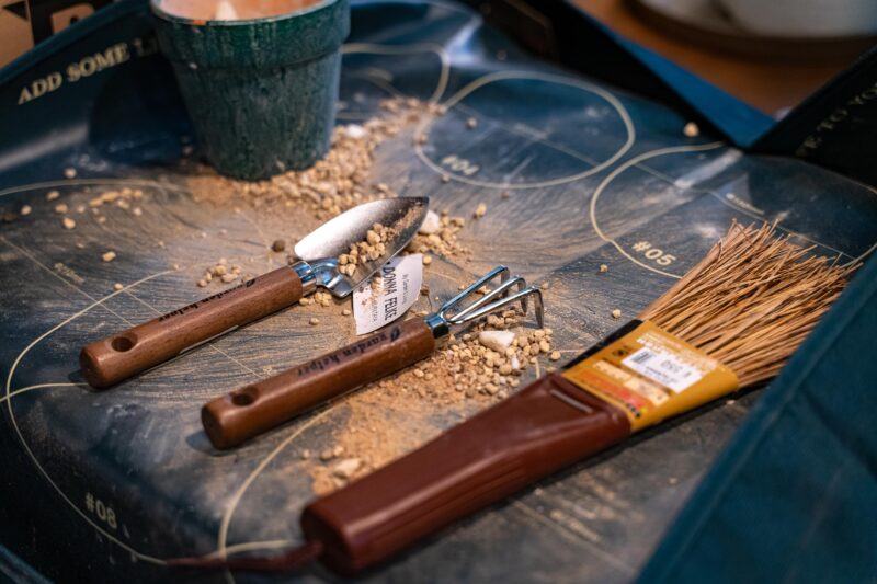 ちょっとしたガーデニングをするならこうしたカッコ可愛い道具も揃えたいところ。まあ実用性だけなら100円ショップでも手に入りそうですが、趣味というのは自分が一番ワクワクする事が大事ですからね、好きな人はこういうの少しずつ買い集めて楽しめるんじゃないでしょうか?