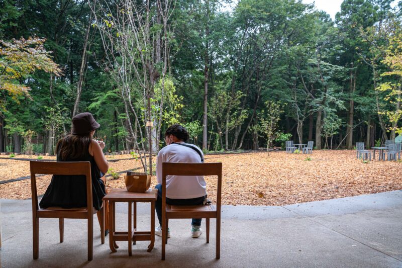 ここは一体何の施設なの?と聞かれると一言でまとめるのは難しいのですが、カフェ、カレーパン専門店、ドーナツ専門店、チョコレート専門店、アパレル雑貨ショップ、美容室などが軒を連ねる、自然環境を活かしたモダンなショップエリアという感じ。