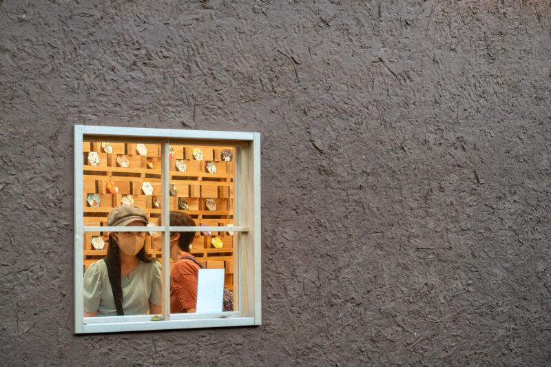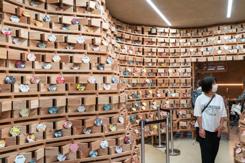 こちらがチョコレート専門店USHIO CHOCOLATLの様子。広島尾道のチョコレートメーカーらしいです。斬新な店舗デザインは窓の外から切り取っても絵になってしまうくらいショップそのものが現代アートのよう。