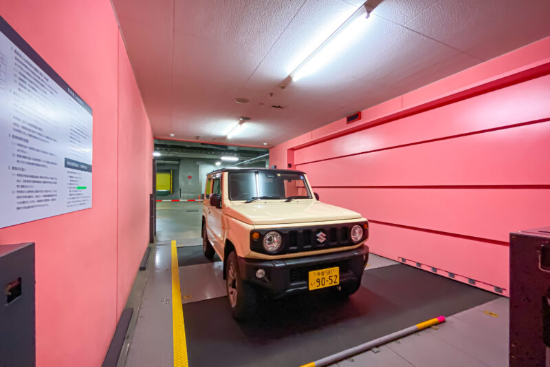 今回利用したこの駐車場は普通乗用車用とハイルーフ用と分かれており、ハイルーフ用は2.4メートルくらいまで対応していたので安心でした。ただ、ハイルーフ用は停められる台数そのものが少ないそうなので満車の確率が高いのだとか。ハイエースとか乗っている人は大変ですね。