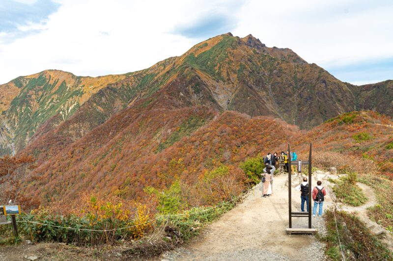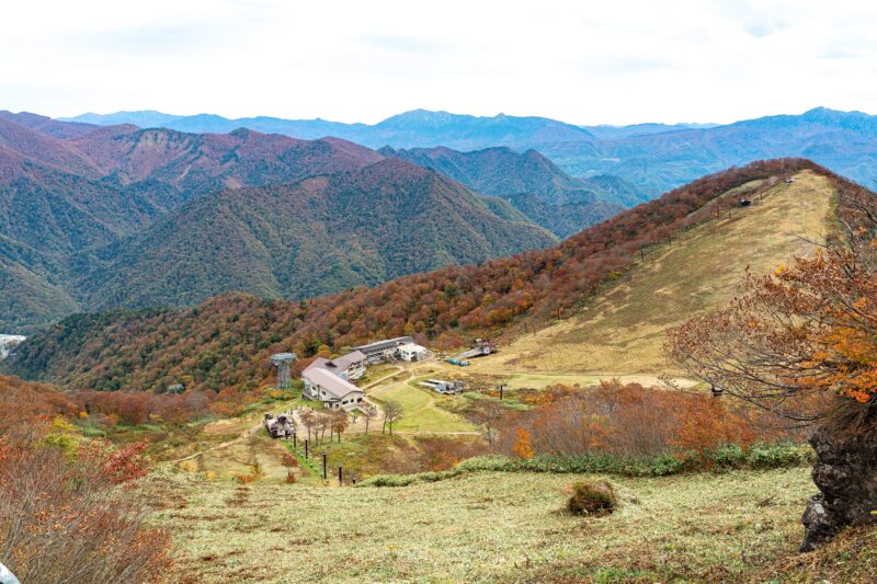 こちらの写真はリフトを降りた標高1,500メートルの登山開始ポイント。正面に高く聳えるのが谷川岳。登頂した場合は標高約2,000メートルの一番高いところまで行くことになります。
