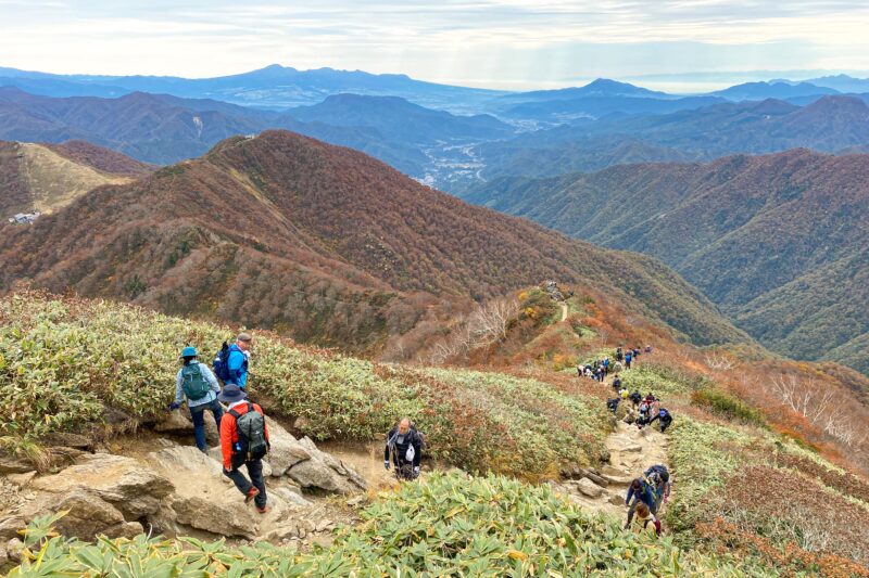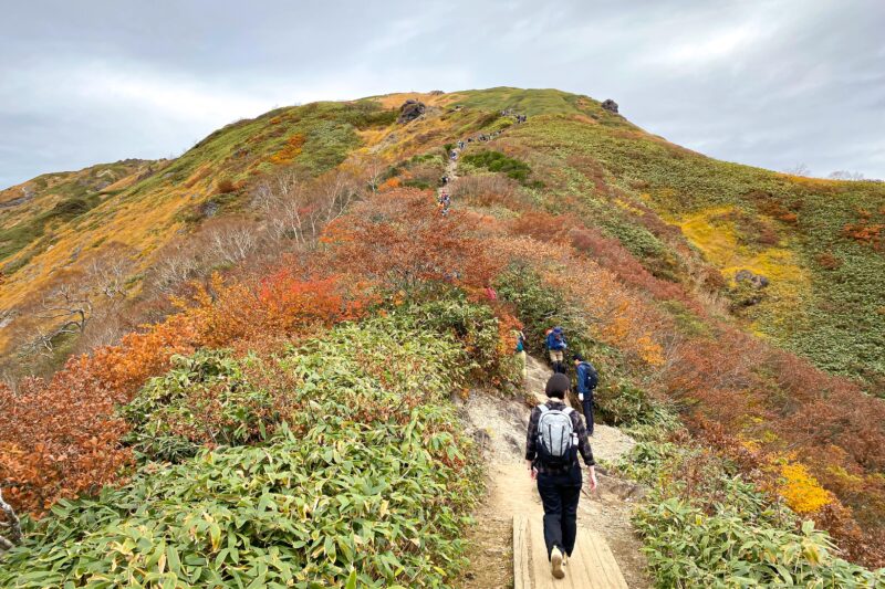 ただしアップダウンが結構あるのでせっかく苦労して登ったのにどんどん下ってしまったりで、リフトを降りた場所との標高差約500メートルの登山とはいえ、数字より長く険しく感じます。