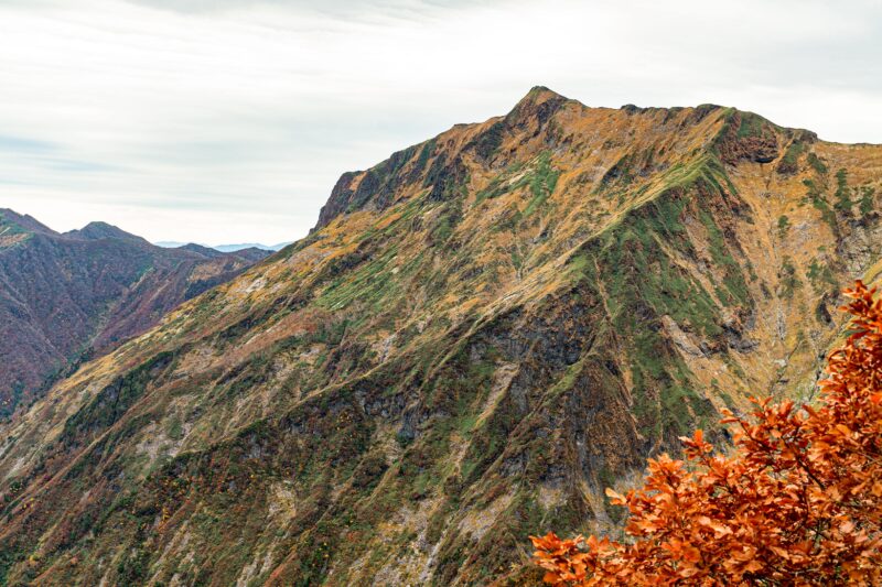 出発した時に遥か遠くに見えていたオジカ沢ノ頭と思われる峰がもうすぐ横に見えていました。私などロープウェーを使わなければまず見られなかったであろう景色です。なるほど800人もの人が命を落としているというのは、我々が歩いたような登山道ではなくこうした断崖絶壁を登ってくる人なんだろうと想像してみました。