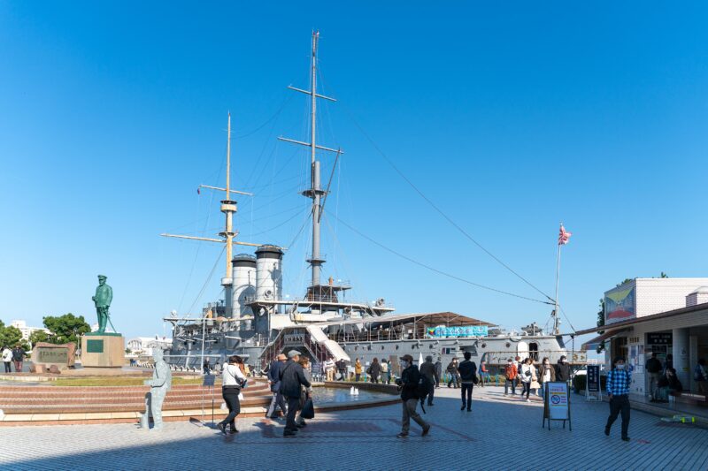 猿島へ渡るには対岸となる横須賀・三笠公園から船を利用します。船といっても上の写真にある戦艦 ”みかさ” で行くわけではありません、もう少し現代的で平和な船がこの向こうに待っています。