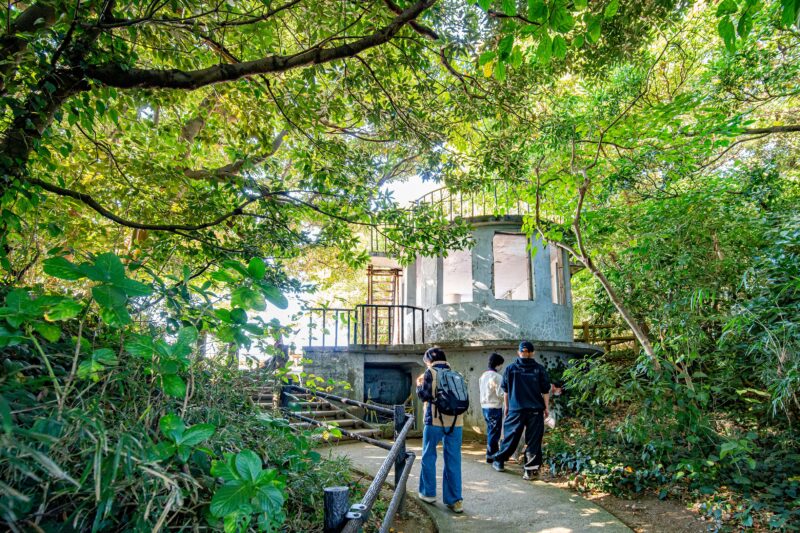 島は多少の高低差があり息を切らすほどのアップダウンではないまでも曲がりくねった階段を上ったり下ったりしながら進みます。分かりやすい道になっていない理由は、戦時中に敵が攻めてきた時に少しでも混乱させルートを読まれないようにするためでしょうか。