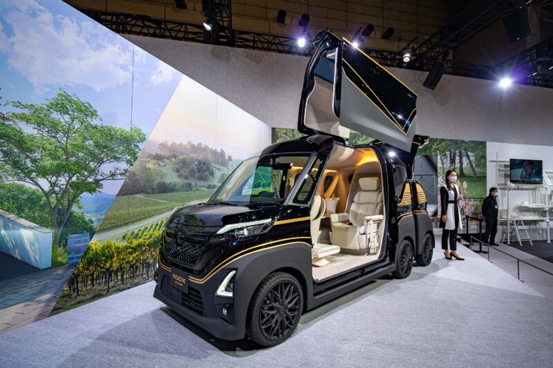 なんだかよく分かりませんでしたが、ひとまず撮影だけしてきたこの車。ROOXのコンセプトモデルらしいですが何やら内装がオールホワイトで本革っぽく随分ラグジュアリー思考な佇まい。第一後ろに引っ張っている小型のキャリーは何だ?
