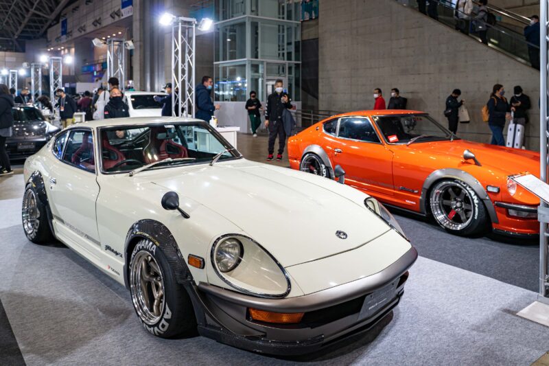 同じ型のフェアレディZは日産以外の展示スペースでも見ることが出来ました。こちらはカスタムモデルになっているのでバンパーやサイドスカートの装着で随分ボディサイズが大きく見えましたね。