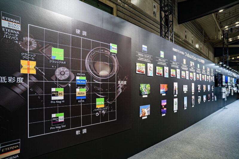 FUJIFILMブースではラージフォーマットセンサー搭載のGFXシリーズやAPS-Cセンサーで機動性重視のXシリーズカメラの展示は定番ですが、今回は壁一面にFUJIFILMお得意のフィルムシミュレーションからのプリントが勢揃いし見る人の足を止めていました。