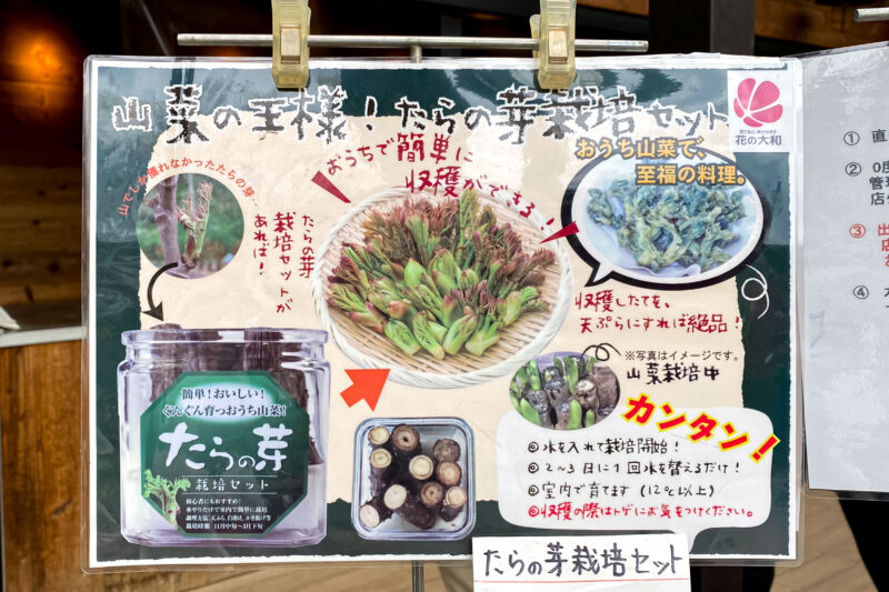 先週末、ご近所のオザキフラワーパークを訪れたところ面白いものが販売されているのを見つけました。なんと ”たらの芽栽培セット”。