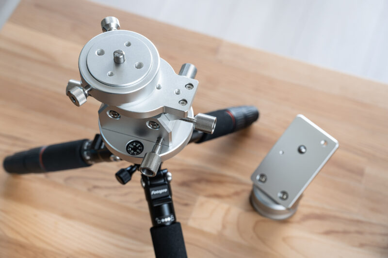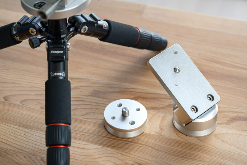 私はこの極軸微動ユニットを天体撮影専用に導入したのでユニットに組み合わせるのは赤道儀を載せるための傾斜ウェッジだけ!と考えていましたが、この傾斜ウェッジの代わりに水平にマウントできる台を取り付ければ一般的なカメラ用雲台が載せられるのでは? と思いつきました。