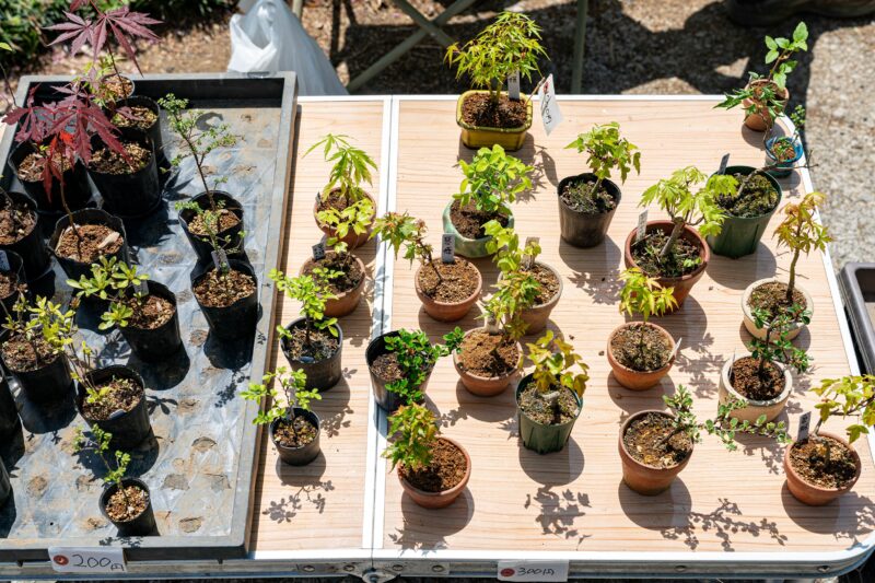 先日、埼玉県秩父まで芝桜を見にいった際、現地でたまたま見つけた盆栽職人さんの直売コーナー。そこで手頃なモミジを見つけたので購入してみました。