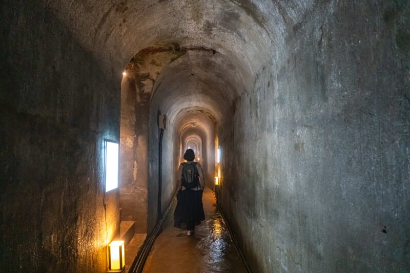 戦時中は防空壕としても活用された洞窟内。コンクリートの壁はいささか当時のものとは思えませんがこれも時代を超えて今に伝え残そうと最善策の一つとして施された改良だろうと思います。
