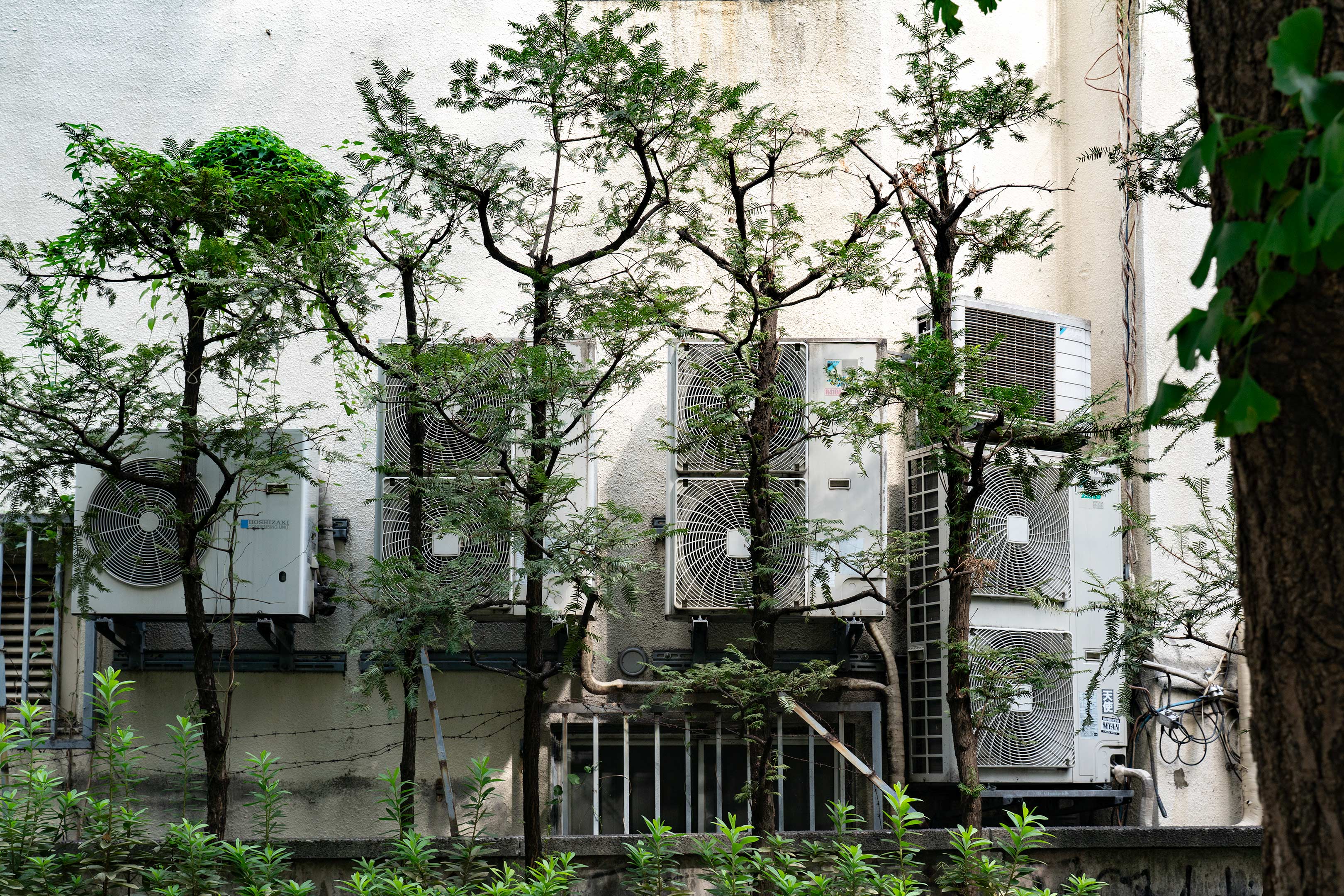 もともと都市というのは人が多く集まった場所ですから必然的に人間の居心地優先で発展していくエリアですが、とはいえ人が快適に暮らすにはある程度の自然が必要だとか、都会の利便性の中に贅沢にも自然を取り入れようと欲が出るので、裏通りを歩いてみるとこのような不自然な環境を目にすることがあります。人間は多少快適に暮らせるのかもしれませんが植物にしてみたらなかなか過酷な環境ですね。