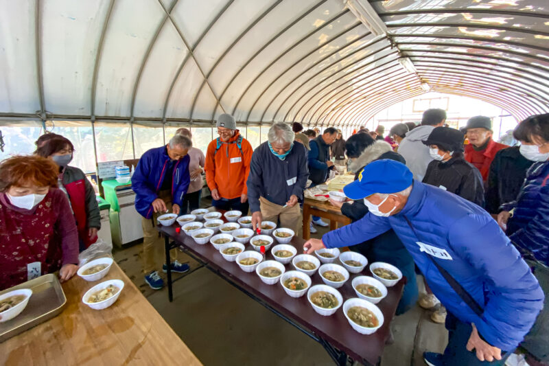 豚汁は畑の野菜を使って山盛り。そこへ今回のお餅も入れおかわりまでしますからこの時点でお腹が限界に達します。とはいえ寒い季節ですからこの暖かい汁物がすごく美味しいのです。