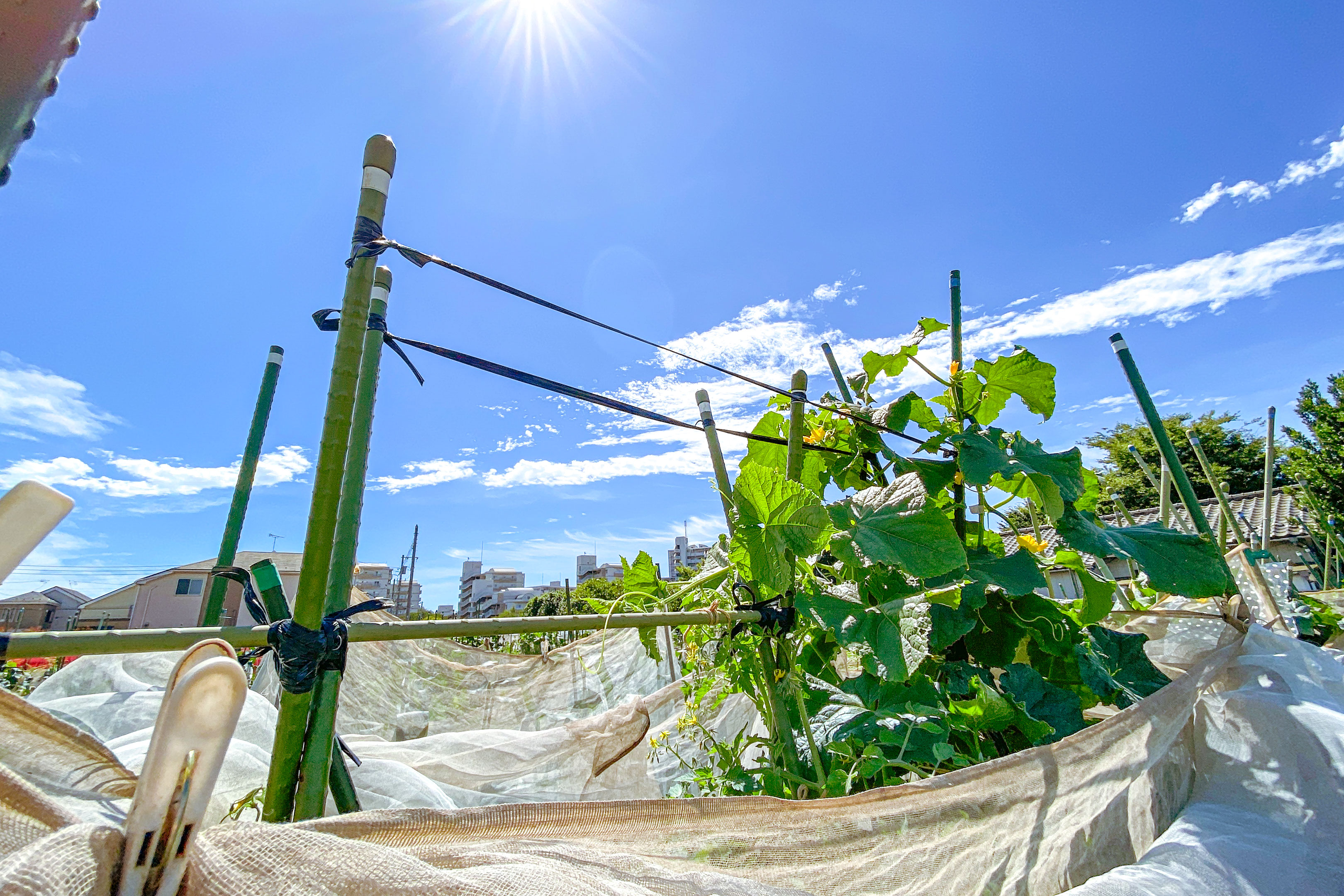 ところが今朝から東京は真夏のような青空が広がり気温も35℃に達しました。こんな時は体調に配慮して屋内で過ごすのが最適解とわかっちゃいますが、畑仕事は待ってくれませんからね、就業前の早朝収穫へ行ってきました。