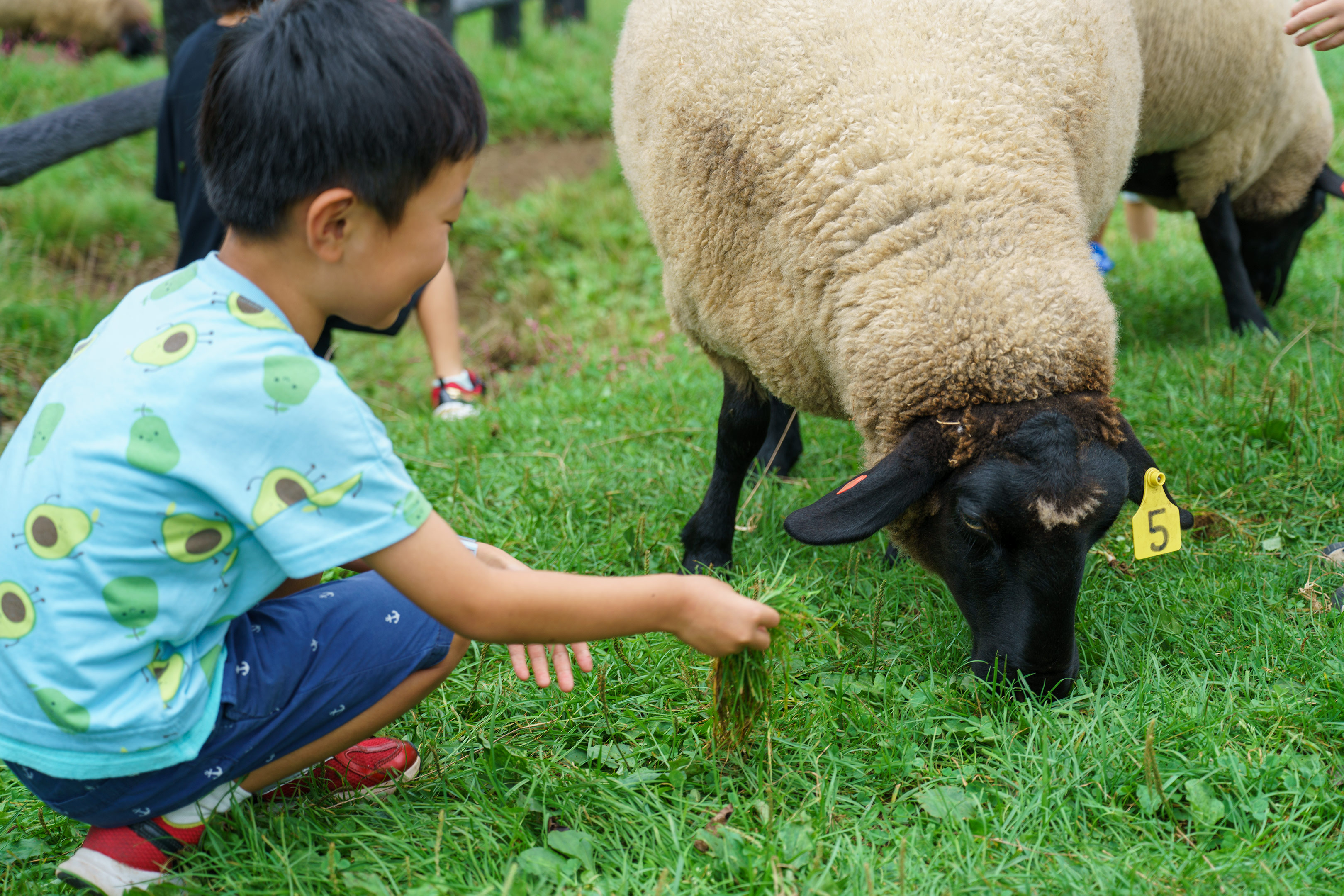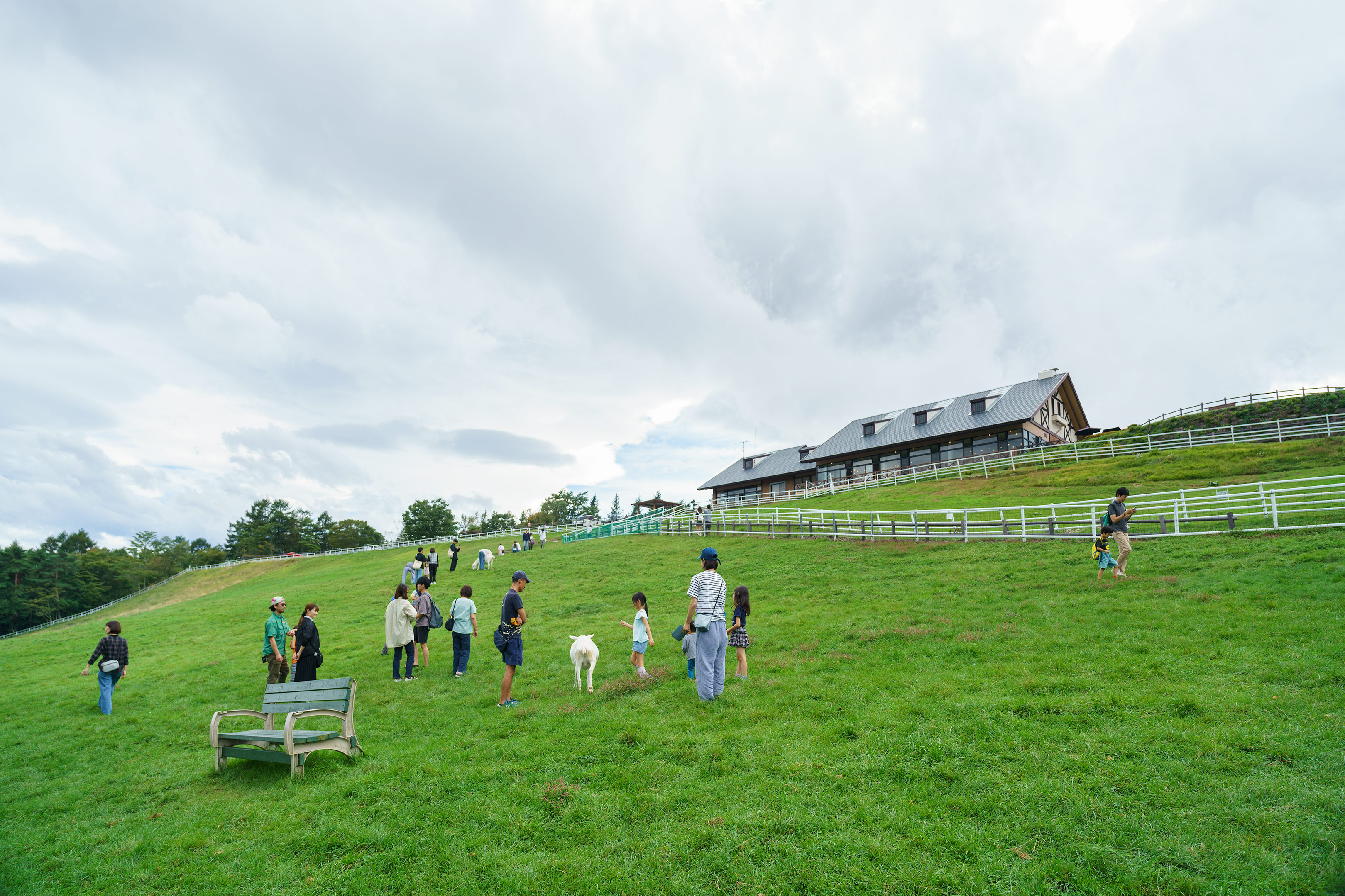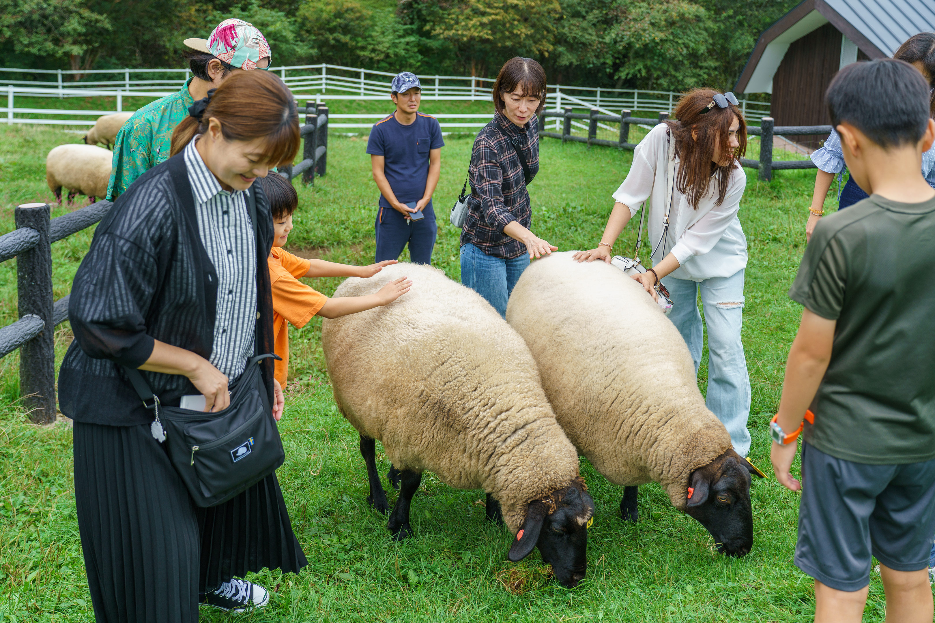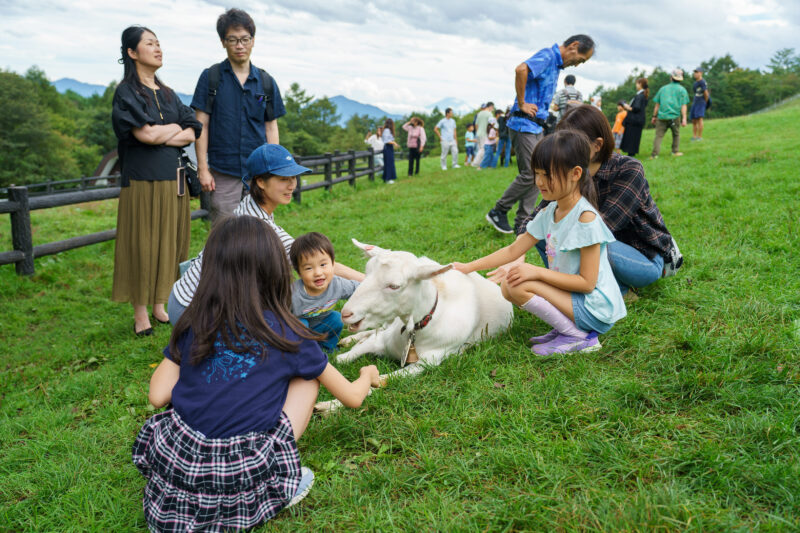 牧場内の一部エリアは開放されており、自由に動物たちと戯れる事ができます。普段の生活では接することの少ない山羊や羊がペットのように横たわっていますから子供達は大喜びですね。