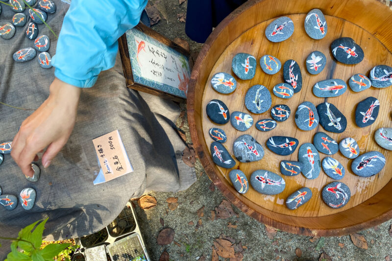 このイベントはあらゆる方面からいろんな作家さんが集まっているので、何も実用的なものばかりではありません。こちらは石ころに金魚や鯉の絵が描かれた置物ですが、なんともその色合いが美しく、描かれている絵の繊細さも伝わってくるじゃないですか!