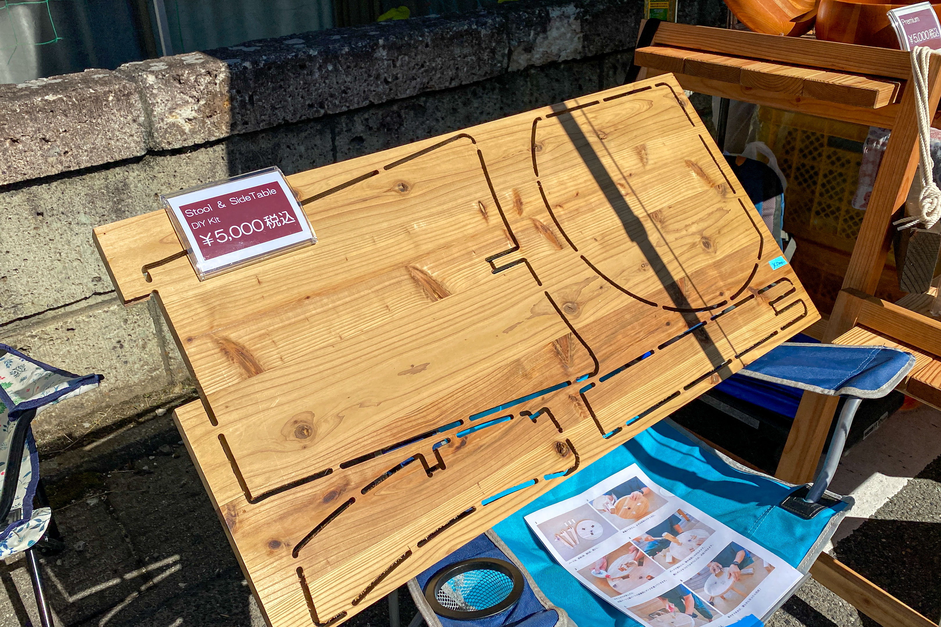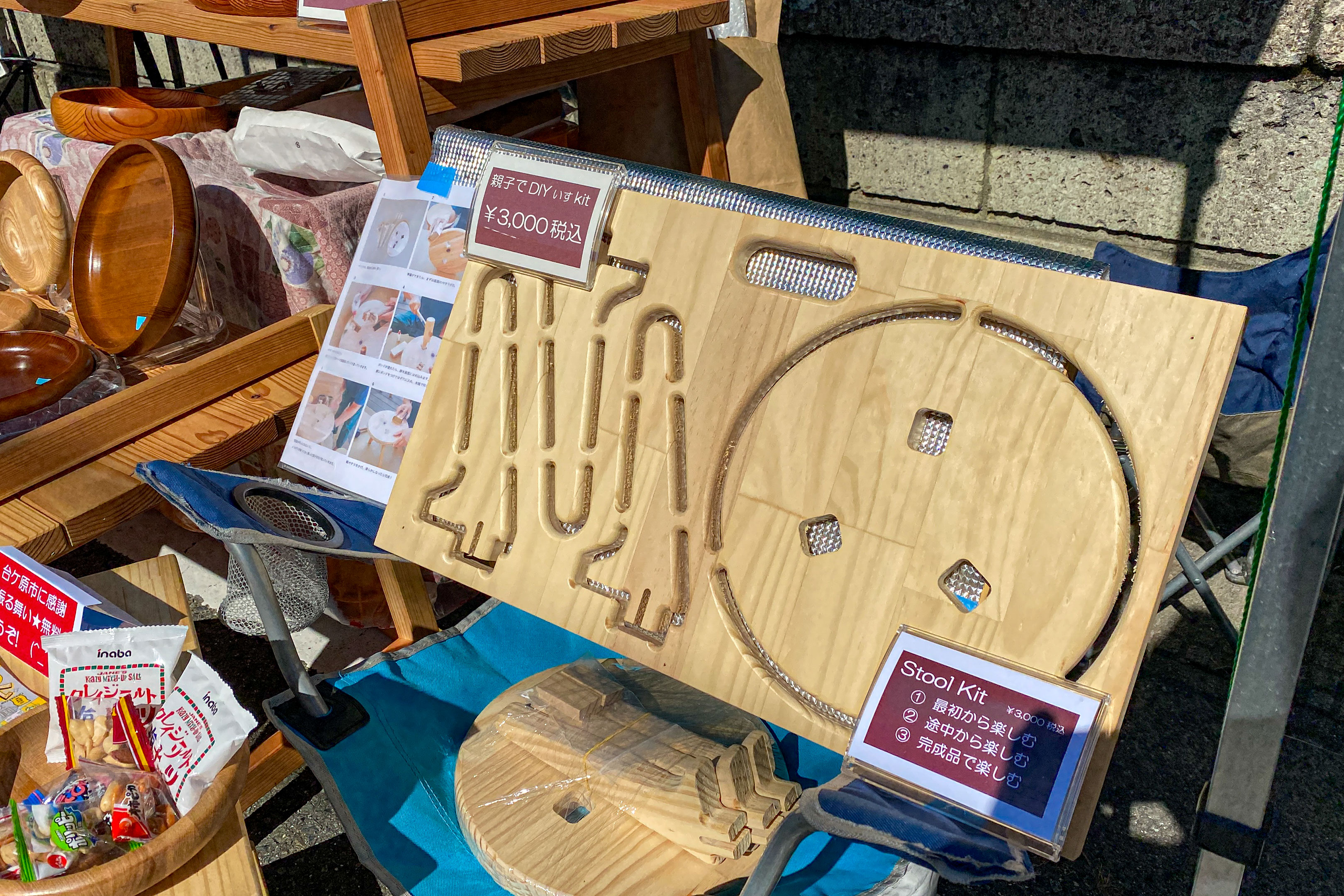 多数木工製品が出店されている中で ”これは珍しい” と感じたのがこちら。一般的にイベントでは作家さんが作り上げた完成品が販売されるのに対し、こちらは組み立てキットの販売。つまりこの組み立てキットを作家さんが製作しているというわけ。