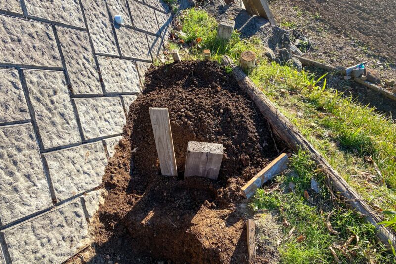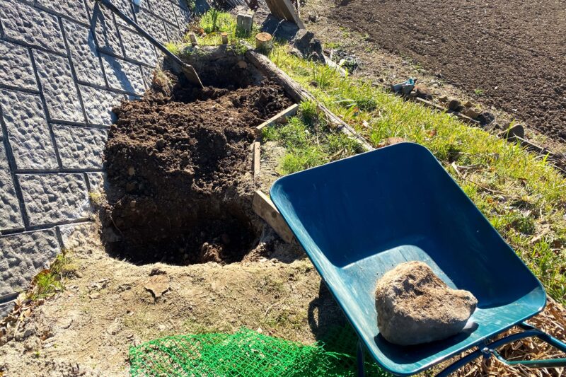 石がなければ深くまで土を掘る作業は単調で難しくないんですけどね、とにかく地中30cmより下は砂利が凄くてスコップが入っていきません。