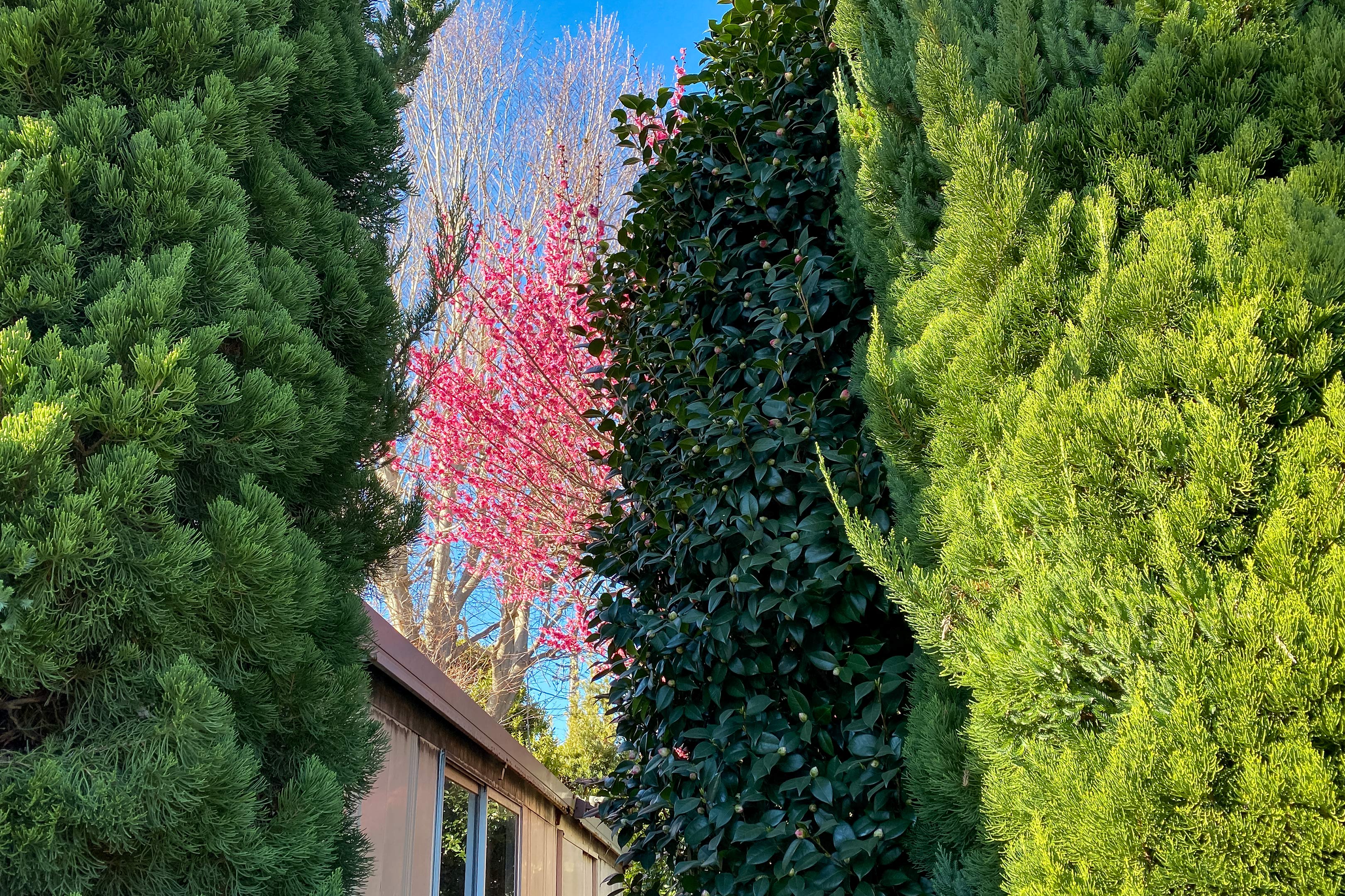 百日紅の花などにも共通して、咲き始めの梅は特に隙間から見え隠れするくらいが一番綺麗に感じます。