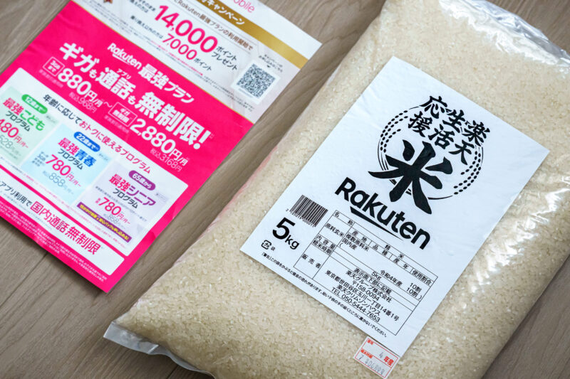 楽天での購入は地域によって発売日や購入可能時刻に差があるようで、それによって全国民一点集中を避けられている点は唯一の救いと捉えるべきでしょうか。楽天購入ですからもれなく楽天モバイルのチラシが入っていましたが、我が家は夫婦揃って楽天モバイルユーザーですから全くもって意味のない勧誘。思うにこんなチラシを入れるくらいなら、楽天が販売するお米は楽天モバイルユーザー優先購入の特権にすればもっと加入してもらえそうな気がしますけどね。独占禁止法などに引っ掛かるのでしょうか...。