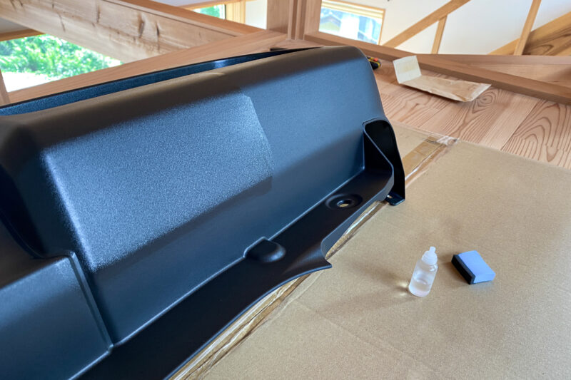 車にそのまま取り付けるなら水洗いなど不要でしたが、今回は取り付け前に樹脂パーツ用のWAKO’S SH-R未塗装樹脂用耐久コートSUPER HARDでコーティングをしようと考えこうした段階を踏みました。
