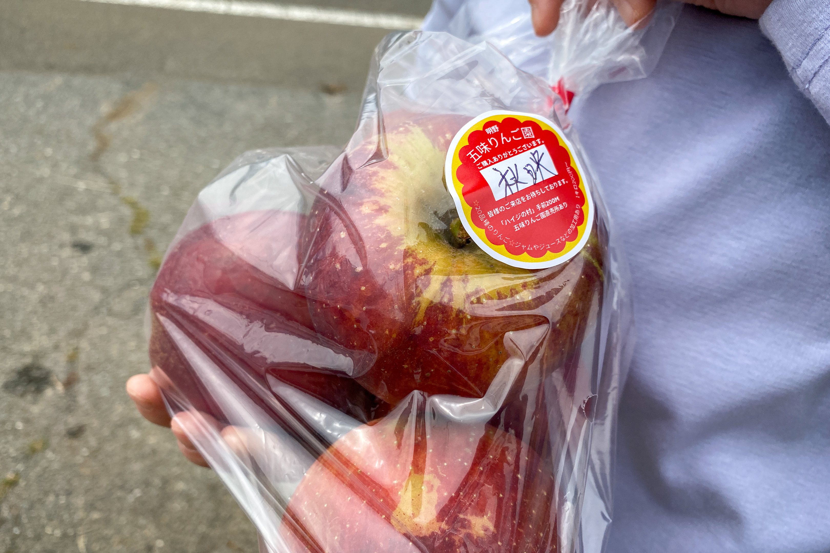 面白いもので、柔らかいリンゴは実の中心付近から熟していき、硬いりんごは外側から熟していくそうで、秋映は硬い品種なので外側から熟し、よく言われる ”ミツ” が外側から入っていくんですよね。農家さんとの会話にはいろいろな発見があって面白いです。2日連続で直売所を訪れ2品種とも購入しました。