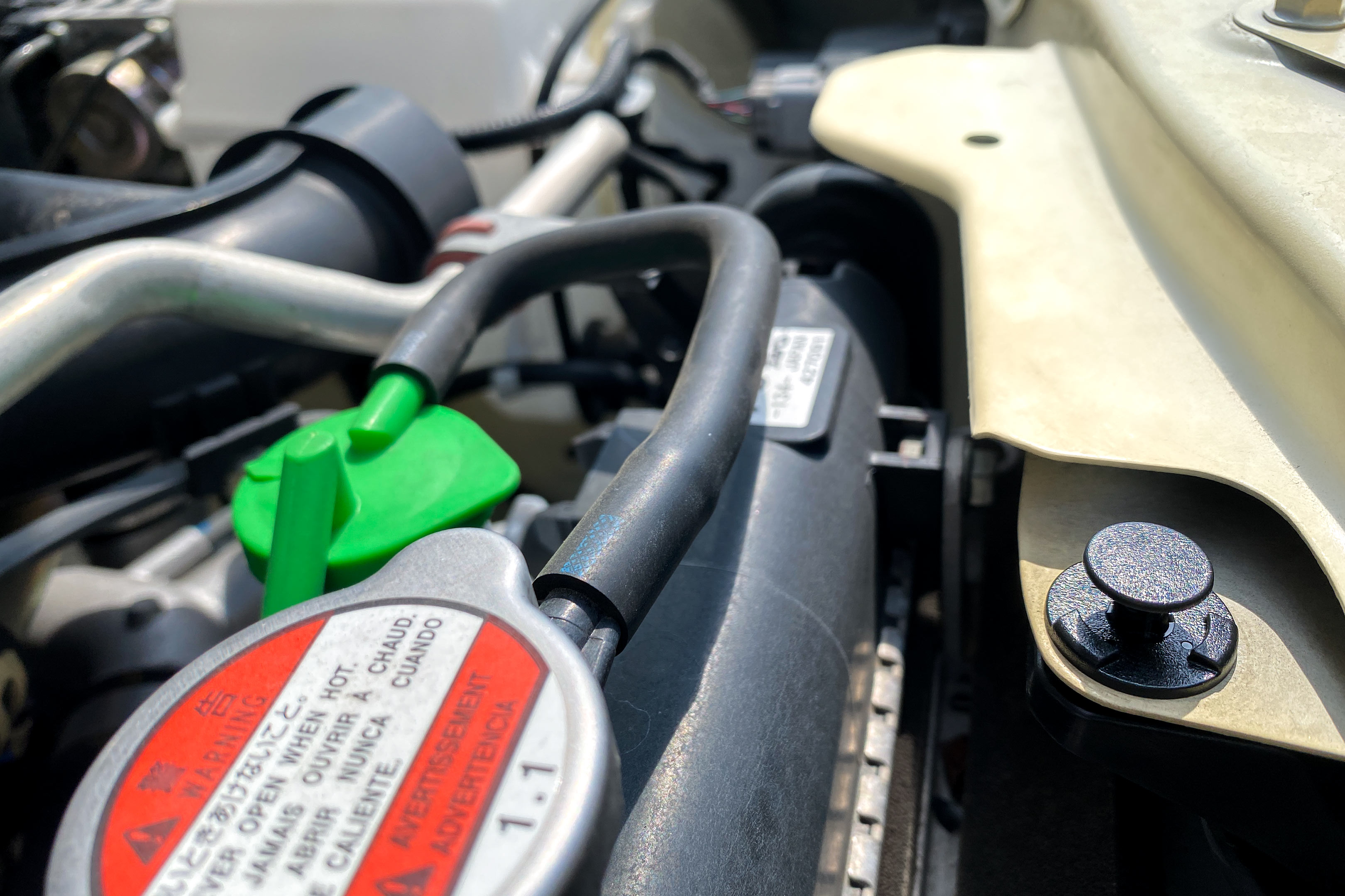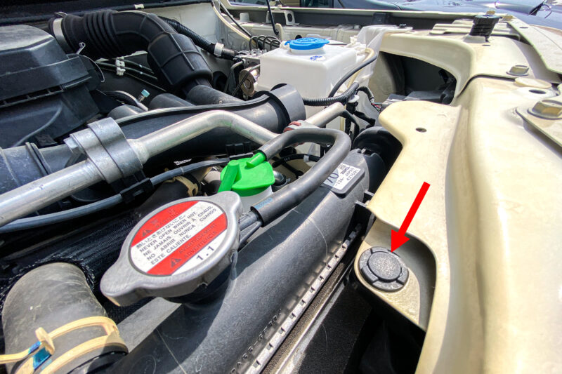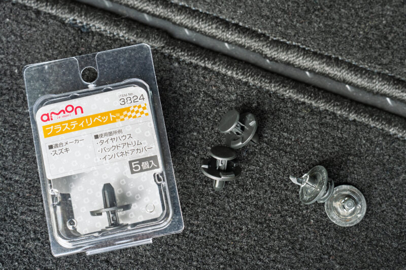 先日ジムニーのフロントグリルを交換した際、エンジンルーム内でグリル上部を固定しているプラスチック製のリベットが一部折れてしまったので新しいものに交換しました。