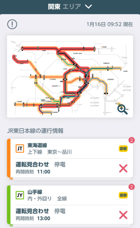 朝のニュース番組で停電の影響で山手線が始発から運転見合わせとの情報は掴んでいましたが、まさか自分の出勤にも影響が出るとは思っていませんでした。