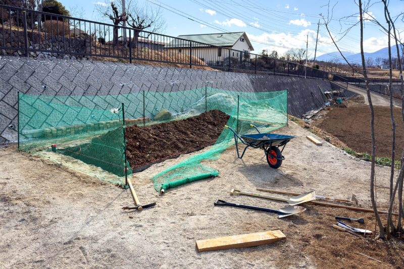 今年も家庭菜園エリアの工事を行いました。手をつける前は半日もあれば終わると思っていたところ蓋を開けてみたら結局まる2日もかかる事に。