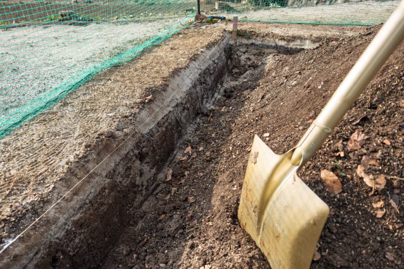 当てがってみては確認し、スコップで掘って修正、また当てがってみては確認の繰り返しで、根気が必要なうえに掘った土は畑の真ん中で高い山になっていきますからスコップで持ち上げるストロークが増えて行き次第に体力が奪われていきます。