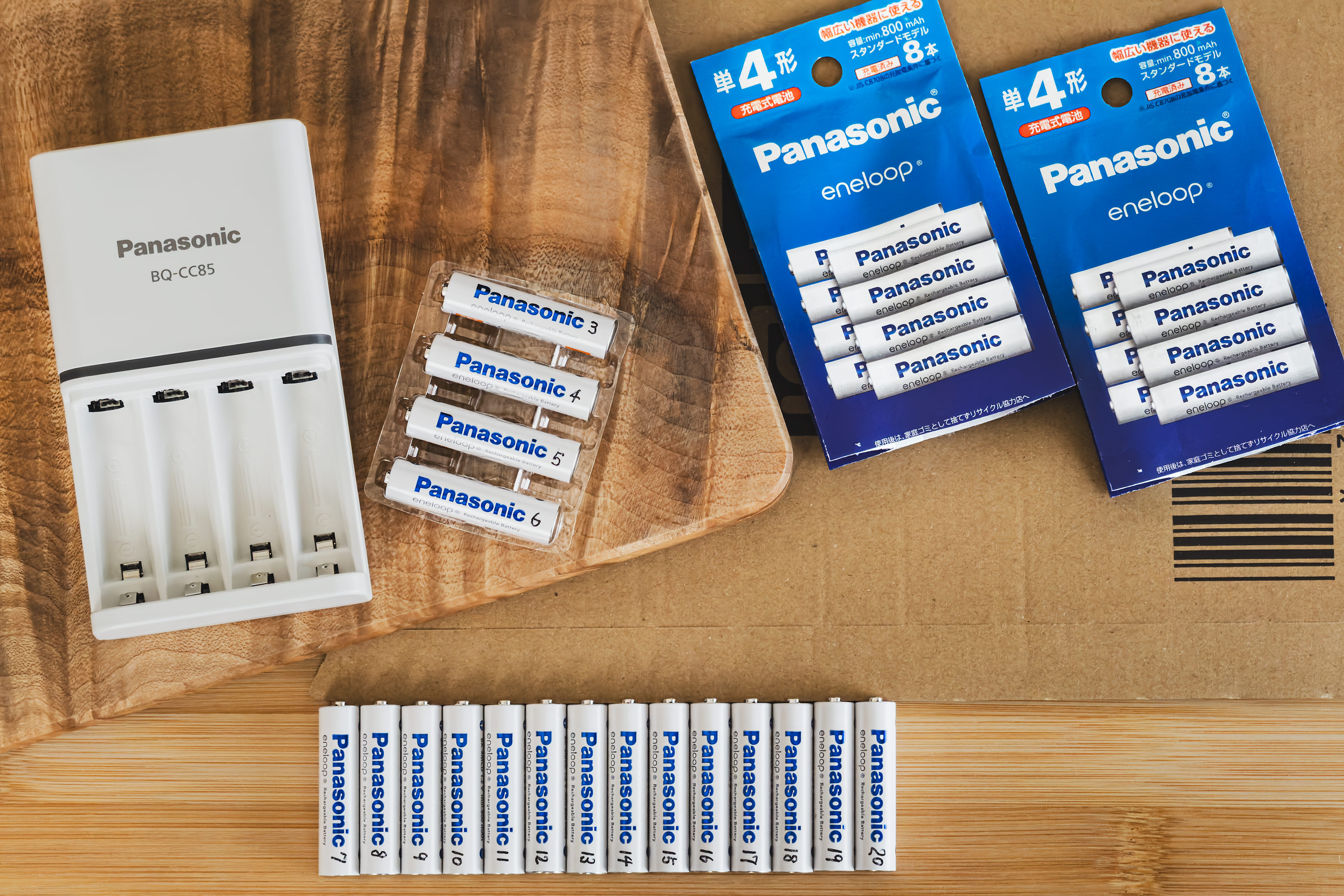 エネループを追加購入。先日数本のエネループを購入し家電製品のリモコンや温湿度計など充電式電池が使えるデバイスとそうでないものを検証してきましたが、我が家はその殆どが充電式電池で賄えることが分かったためこのタイミングで合計20本まで数を増やしました。全て単4型。単3型は以前よりいくつかのデバイスで使用中。