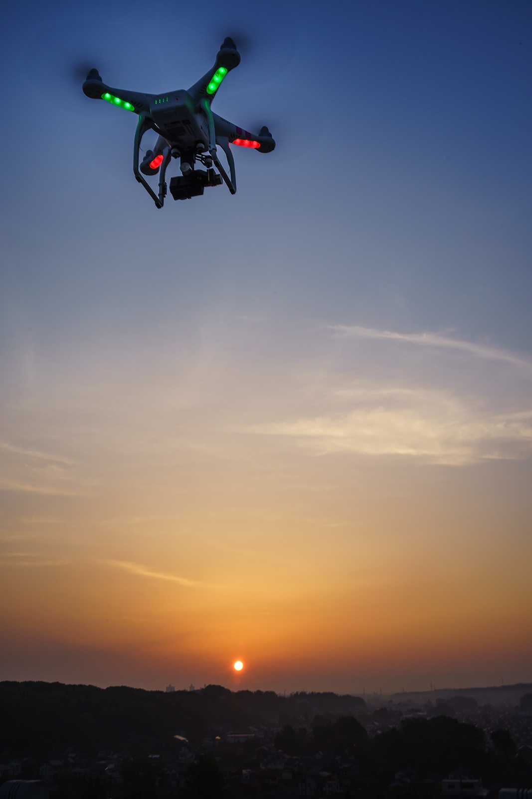 日の出のタイミングに合わせるように離陸。今回はラダーの効きを少し弱めるべくDJI Assistant SoftwareからYawのGainを120%から80%に減らしての飛行、一番最初にその変化を確認しましたが思うような結果得られず。もっと極端に減らしたら分かりやすい変化が出るのかもしれませんが、どうやらこのパラメーターはプロポからのコントロール値というよりは機体そのもののGainを変化させるようですので、あまり極端に換えてしまうと自立制御にも影響が出そうですから慎重にチューニングする必要があります。