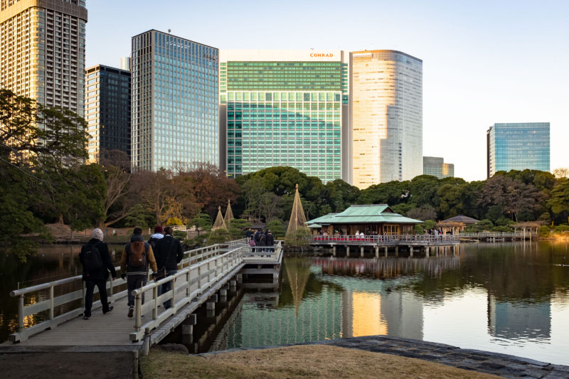 この庭園の見所なら観光案内係の方にでも聞けば歴史を振り返りながら色々教えてくれるのだと思いますが、私目線で一番印象深かったのは近代的な都会の風景と日本庭園の調和みたいなところ。全国的に見てもこうした落ち着きある庭園の背景に近代的高層ビルが立ち並ぶ風景ってなかなか見る事が少ないように思うのです。時代のコントラストとでも言うのでしょうか。