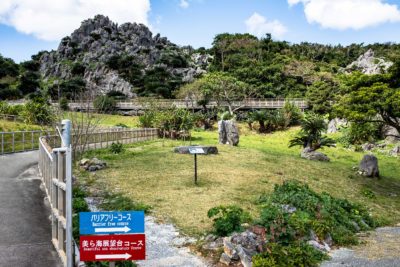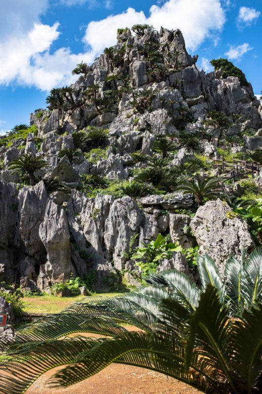 続いて向かったのが辺戸岬から車で3分ほどの場所に位置する大石林山。沖縄と言うと青い海ばかりを連想しますが、山にも有名な観光地がいくつかあり、ここはそのうちの一つであり国立公園でもあります。