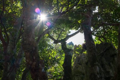 それにしてもこの大石林山、岩がとにかく鋭くて沖縄以外ではあまり見かけない風景です。あえて例えるならディズニーランドのビッグサンダーマウンテンに木が生えている感じ。ディズニーランドと違うのは驚くほど人気(ひとけ)が少ないところでしょうか。