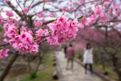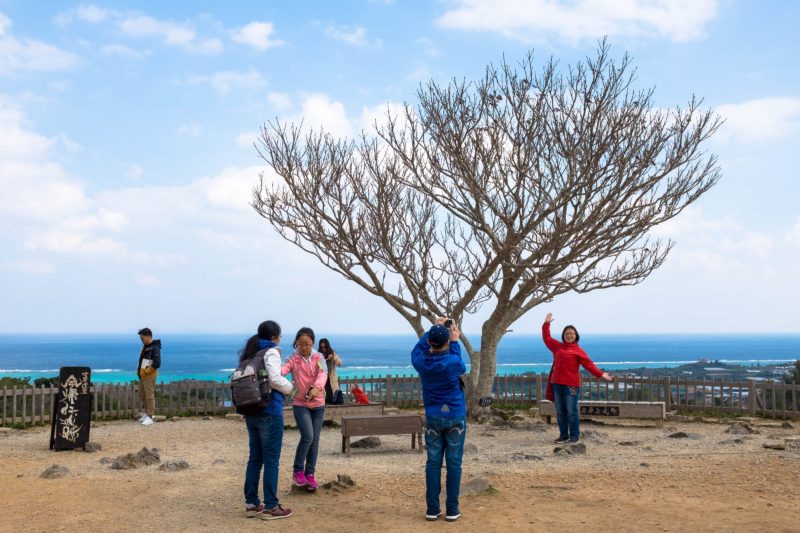 ホテルのフロントで「沖縄は北から桜が咲くんです」と聞いていましたが、丁度今ここ今帰仁城跡では桜祭りが開催されています。カンヒザクラという種類らしくソメイヨシノと比べると桃の花のように濃いピンク。既に5分咲きくらいでしたね。なんだかここだけ急に春の装いでほのぼのしておりました。本州にも早くこの陽気がやってこないかと待ち遠しいです。