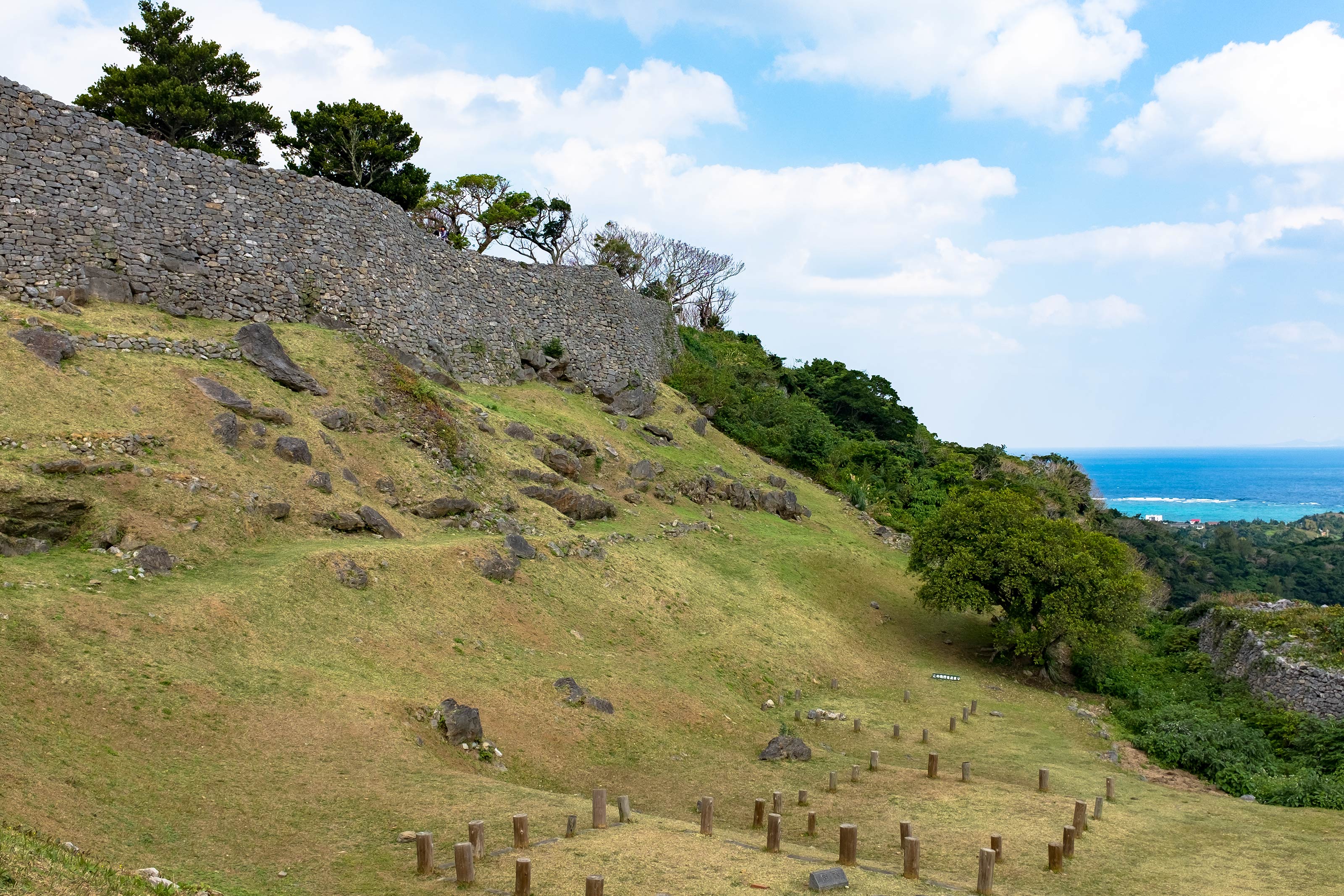 下調べ無しで訪れているため予備知識ゼロですが、琉球王国沖縄に複数あるとされるグスクと呼ばれる遺跡で世界遺産だそうです。沖縄は首里城もそうですが、石の壁というのがよく使われている気がします。こうした城跡に限らず一般家庭でも石が良く使われますね。建物のベランダの柵なども関東なら金属のところ沖縄ではコンクリートだったり。台風地方である事や潮風の影響などを考慮しての事でしょうか。