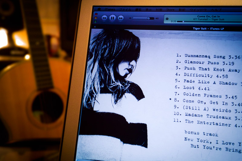 さて今日はKT Tunstallとkelly clarksonのアルバムを購入しました。iTunes LPは初めてダウンロードしたのですが、てっきり大きなアートワークのようなものが付いてくるのだろうと思っていたところ、Apple純正アプリFront Rowのような(DVDメニューのような?と言ったほうが分かりやすいかも)役割なのですね。恐らくiPhoneには転送出来なくてiTunesだけでのプレビューだと思います。