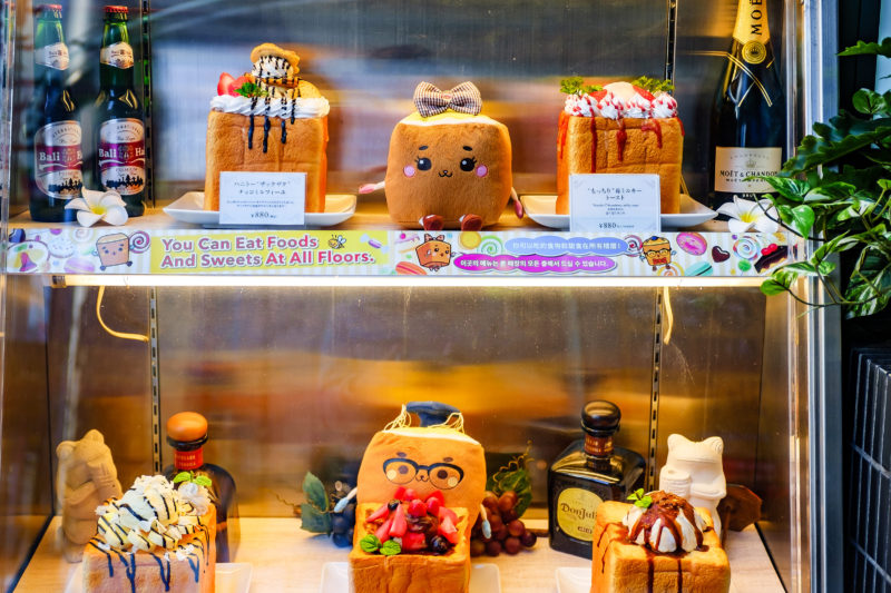 東京の街を歩いていると時々こんなふうなトーストの食品サンプルを見かけます。私は未だに食べたことがないので知らないのですが、これって注文したら本当にこんなふうに食パン一斤にデコレーションされて出てくるのでしょうか? 食べにくいでしょうし、一人では食べきれないと思うので数人で...という事になるのでしょうが、そうすると上のクリームなどが少なくパンばかり食べる人が出てきそうですよね。真相はどうなんでしょう?