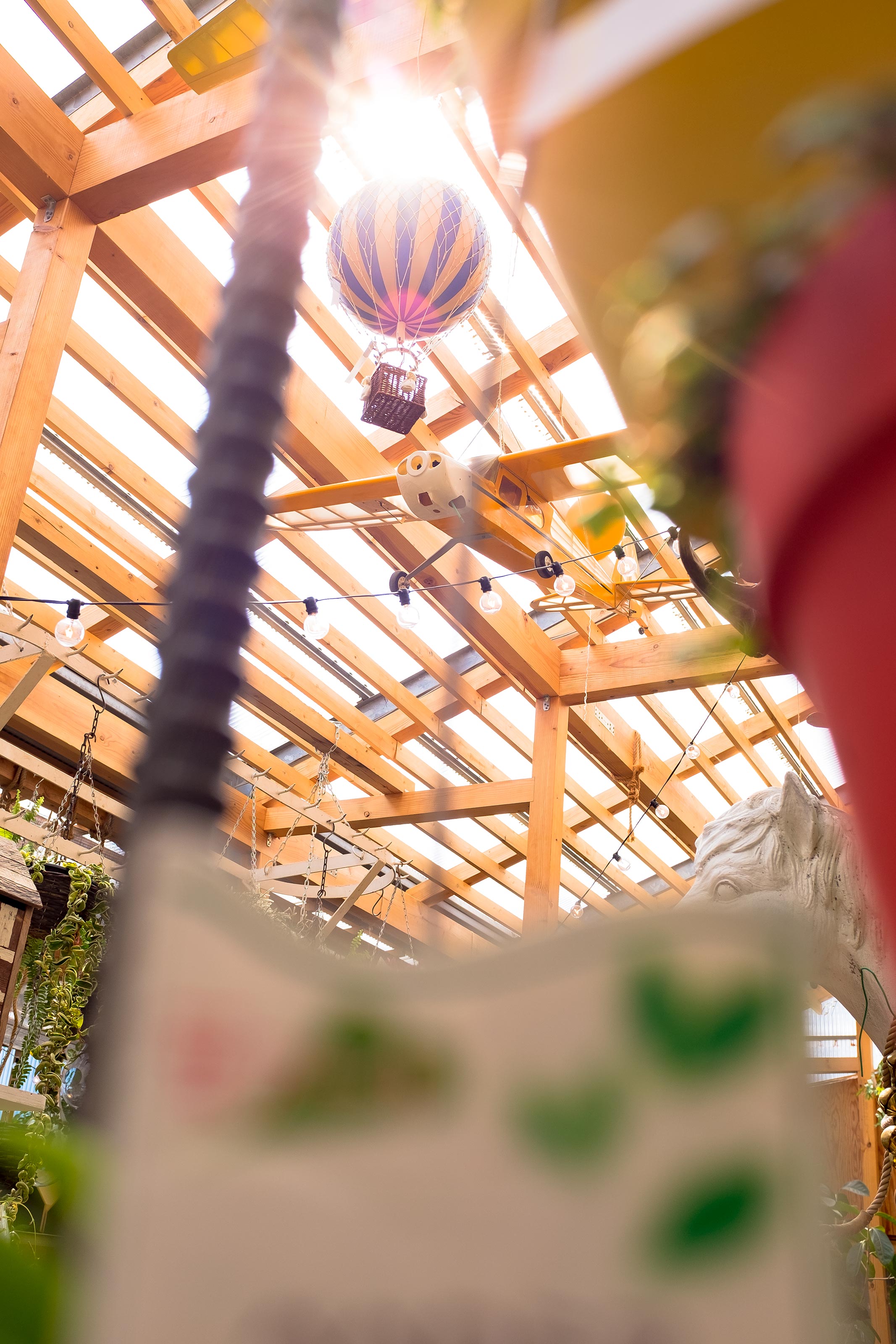 Cashierのあるメインの建物の中には天井からラジコン飛行機や気球がぶら下がっていたりしてとてもワクワクする空間です。園芸用品などもこの空間の中に並んでいて、それも少しアンティークなデザインのものがあったりしますからホームセンターのソレとはまた違っていて面白いです。