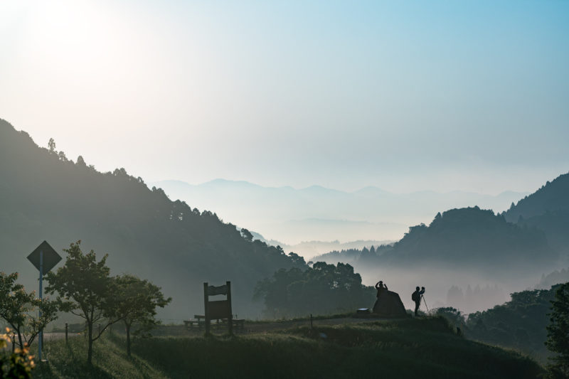 実はこの場所にたどり着くまでに道を間違え、車1台がギリギリ通れるような泥んこの道を1km程走ることになりました。しかも1速じゃないと登れないような急坂もあったりして。ただでさえ朝日に間に合うかどうか...なんて気持ちで慌てていたのに、iPhoneのナビには ”大山千枚田” と入力しただけでルート案内をさせてしまったため、写真を撮ろうと考えていたスポットとは全然違う場所に案内されてしまっていたのです。そりゃそうですよね、 ”大山千枚田” はここいら近辺全体の名称であり、数百枚もある田んぼのどの位置かなんて事はiPhoneは考えてくれないわけで。