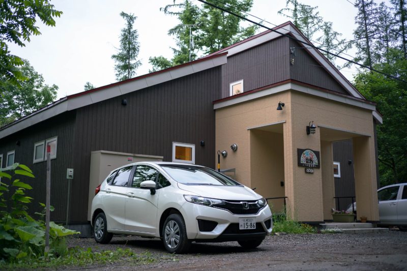 午前のAIRで羽田から移動し、新千歳空港でレンタカーを借り2時間ちょっと走ればここ富良野に到着します。今回借りたのはホンダフィット。ハイブリッドではありませんが降ろしたての新車を貸してくれたので私が走り始めた時のODOメーターはまだたったの5km。車内は新車の匂いが強く空腹時にはちょっと気持ち悪くなるくらい。それなのに今日の天候ときたら富良野へ向かう道中で本降りの雨。あっという間に泥だらけ! レンタカー屋さんごめんなさい。