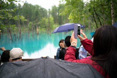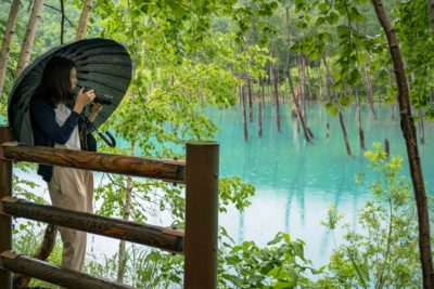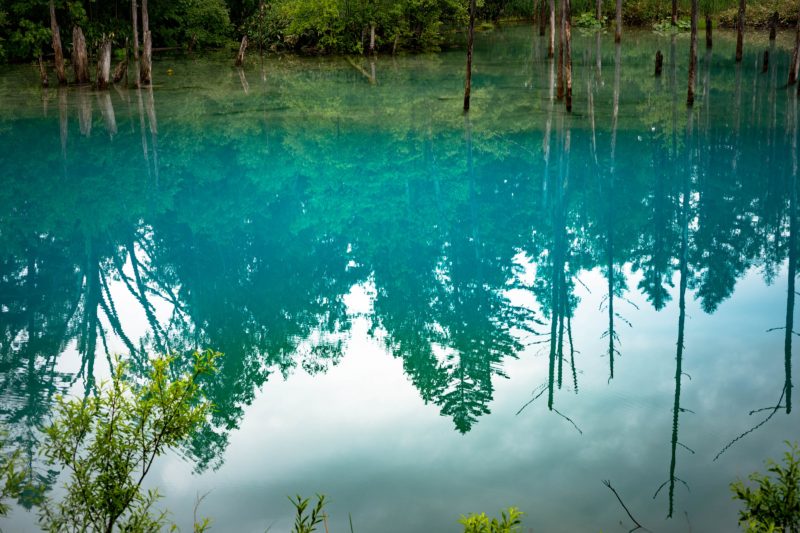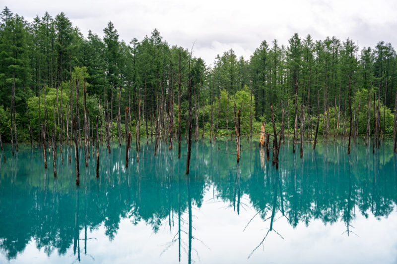 天候に左右されずそこそこ奇麗に見えるんじゃないかと期待していた ”青い池”。東京にいる時から観光候補の一つとして考えていた場所です。