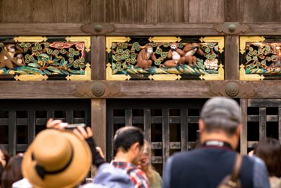 見ざる言わざる聞かざる...って昔から聞いていましたがここがその由来の場所なんですよね。奇麗な建物や迫力のある建築なら他にあるのにこの地味な建物がなぜか有名になった。しかしマスコットのようなお猿さんは確かに愛嬌があって可愛いです。