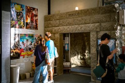 資料館と言いつつも地上にあるプレハブのような建物はごく小さなもので、そこにも多少の展示物はあるのですが、やはり本命はそこから地下へ続く石のトンネルを下ってからの巨大空間。しかしそのプレハブみたいな建物が有名観光地のわりには貫録が無いというか仮設住宅みたい。隣にある瓦屋根のカフェのほうがよっぽど存在感があります。観光バスまで来るわけですからもう少し立派な門構えでも良さそうな気はしますね。