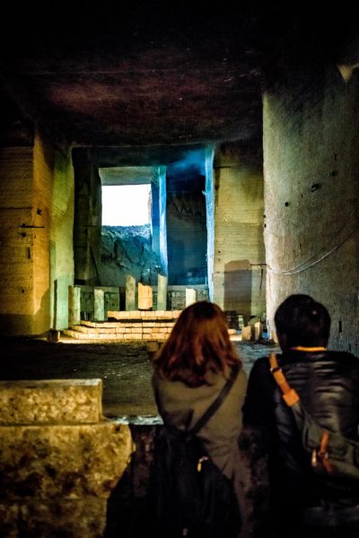 ここは、その昔 ”大谷石” と呼ばれる石の採掘が行われ人の手によって掘られた地下施設。今はそれを資料館として公開しているというわけです。