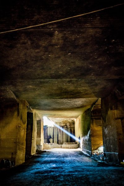 どうですか、このエジプトのピラミッドもびっくりな空間は!。これ全部人の手で掘ったというのですから2度驚きますよね。最初はつるはし一つで始めたみたいですけど、途中からは流石に機械掘りになったんだとか。トンネルを掘るのと違い、採掘が目的ですからダイナマイトでどっかーんというわけにはいかないわけです。石を傷つけないように綺麗にカットして外まで運ばないといけないわけですからね。1つのブロックがおよそ150kgもあり、それを一人で背負って運び出していたそうです。人間って150kgも背負えるのですか...。