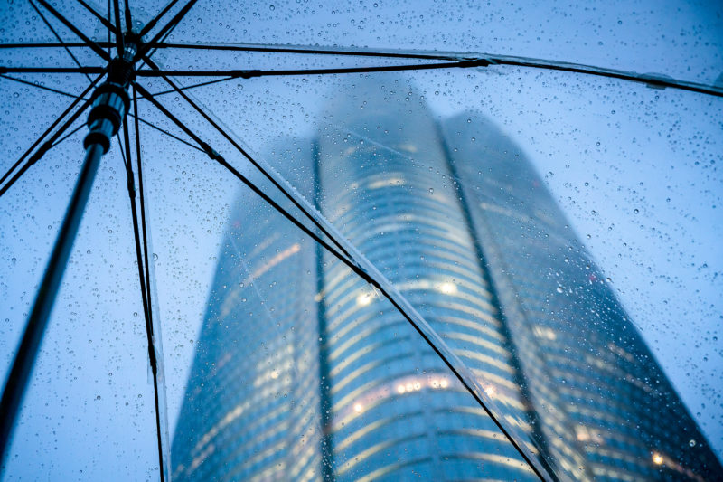 雨には雨なりの表情があるはずでそんな東京を眺めるのも良いものです。遠くを望もうと思っても視界的に無理があるので、大きな建物を煽って見れば雨の中に大都会の存在を再認識できるというものです。